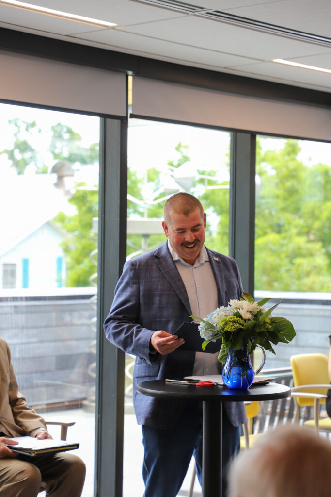 Visible progress has been made over the spring and summer months on both the exterior and interior of the building. Initial brick and fiber cement installation is complete, with some work continuing to fill in the scaffolding supports. Brock CHC’s logo and name now appears on the north and east walls, and a cedar canopy has been installed on the north side of the building. Work on both the main stairwell and back stairwell is underway, as well as the elevator shaft. The start of the elevator install is planned for the next couple of weeks. Framing, taping, mudding and drywall is ongoing, as well as pipe, duct and electrical installation and much more! Currently, the project is tracked for completion in December 2024.