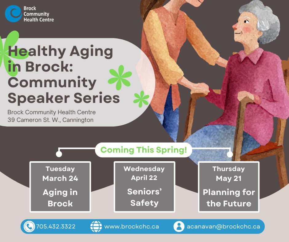 Light refreshments will be provided, and all sessions are proudly supported by the Brock Community Health Centre Board of Directors.